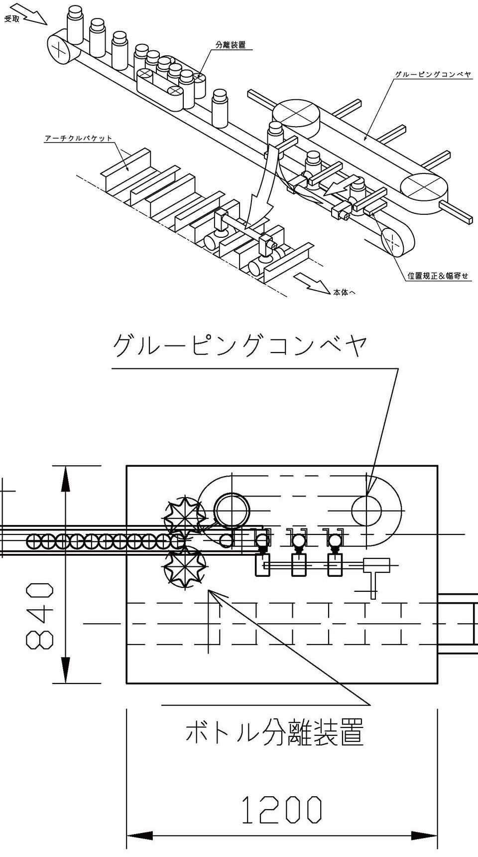 1.ボトルをサイドアタッチで定ピッチに分離し、吸着式移載ヘッドにより、カートナーへ供給します。| 本体能力 |